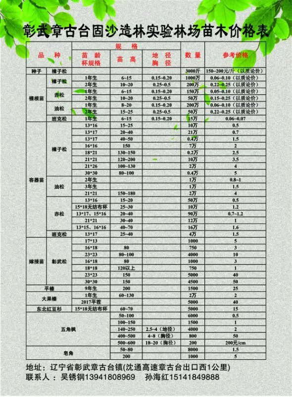 彰武章古台固沙造林实验林场始建于1951年,面积65公顷,年均生产以樟子松为主的各类苗木1000万株。